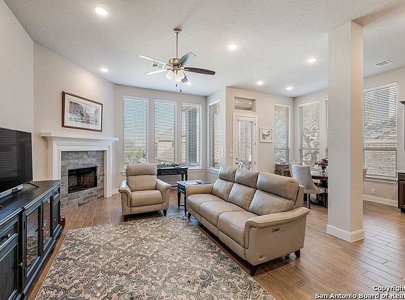 Impressive one-story traditional home w/3 beds/2 baths/3 car tandem garage, office, +/-2275 sqft in Front Gate. Leveled entry to the home with no steps. Open concept kitchen overlooking the family room features a breakfast/island, quartz countertops & lots of cabinet space. Eleven-foot ceiling heights & eight-foot-high custom tall windows in the family room & breakfast nook that give out lots of natural light. Spacious master bedroom w/ceiling fan & walk-in closet. Master bath features double vanity, garden tub & glass-enclosed walk-in shower. An office/study that can also be used as a 4th bedroom. Recent upgrades include epoxy floor & overhead storage racks in the garage, ADT, new blinds, upgraded sink in the laundry room. Deck overlooking the spacious fenced backyard. Job relocation, very motivated sellers. Exemplary Boerne ISD. WELCOME HOME!