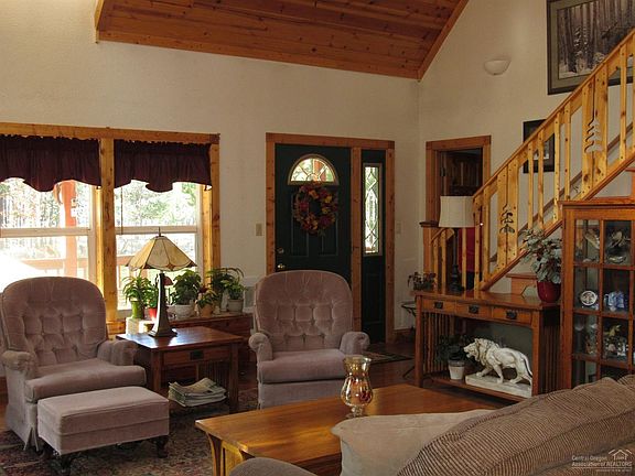 Complete with it's own herd of deer that visits daily! Immaculate custom home is on 5 acres & borders BLM land for added privacy. Beautifully landscaped w/several flower gardens. A must see home w/ lots of light. Skylights, custom carvings in wood railings, maple plank wood floors, granite counters, hickory cabinets, loft, pine walls, 3 different views from LR windows/sliders, covered porch, large back deck, bench seats w/ storage in master bed. Heated work area/storage space above garage has down ladder.