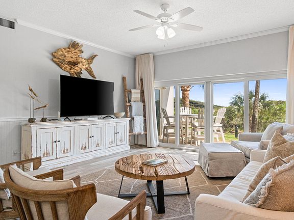 Step into your dream retreat with this beautifully appointed ground floor unit, just steps from the beautiful beaches. This coastal haven offers the perfect blend of comfort, style, and convenience, ideal for beach lovers and those seeking relaxation. Inside, you'll find an open-concept layout filled with natural light, featuring modern furnishings, soft neutral tones, and tasteful coastal accents. Large sliding glass doors lead directly to a patio where you are steps away from the beach and the community pool--just a short walk from your front door. No elevators or long walks required--everything you need for the perfect beachside getaway is within reach.