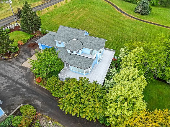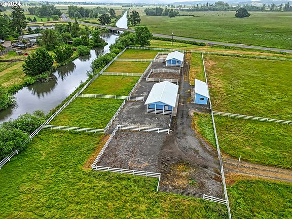 This Victorian style home sits atop of the property and at the entrance of highly sought after Clear Lake Estates equestrian neighborhood just minutes from downtown Eugene. With 4 bedrooms, 3.5 bathrooms, and an office there is plenty of livable space to enjoy. Two large decks wrap around the South and East side of the main home. A private ADA accessible entrance accesses a fully finished basement with 2 bedrooms, full bathroom, and additional living room with fireplace. The property spans over 8 acres with a second 4 bay garage/shop, 2 barns including 4 stalls, 2 tack rooms, hay storage, and an equipment storage building including compost station. The lower east side of the property and borders Amazon Creek. Second garage has a restroom, hot water, garage door openers, and is fully finished. All structures are meticulously maintained. The community offers private bridal trails and a common area for horseback riding.