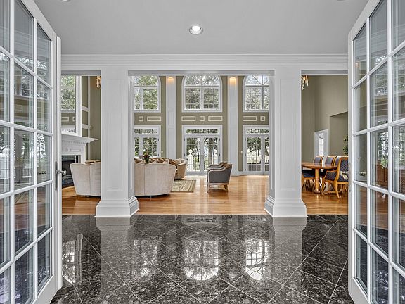 This exquisite 5 bedroom, 8 bathroom estate home in Governor's Club is nestled on a large lot off a cul-de-sac and backs up to a gorgeous wooded lot and rolling views. This home is sure to wow you from the moment you enter and see the gorgeous custom tile in the foyer to the massive coffered ceilings in the living room and dining room with large windows & fireplace leading out to an enormous deck that overlooks complete serenity. The main floor includes a laundry room, 2 office spaces, a custom kitchen open to a family or breakfast room, and a primary bedroom suite with a sitting room and fireplace, a wet bar just outside the bedroom. Two staircases lead to the upstairs catwalk, 3 large bedrooms plus a huge bonus room or bedroom with wet bar, & 4 bathrooms. The finished basement offers a FULL kitchen, a bar, game room, fitness center or office, & a full bath with a steam shower. Use this space as a guest/in-law suite or entertainment area! NEW ROOF, fresh paint, new oven & microwave in 2023!