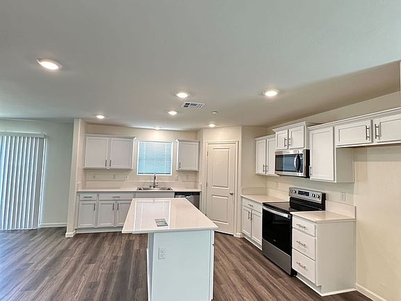 The interiors of this home feature open-style living areas with approximately 8' ceilings throughout and include standard amenities such as quality Whirlpool stainless-steel appliances, including a range, microwave and dishwasher, quartz countertops, chrome finishes, and more.