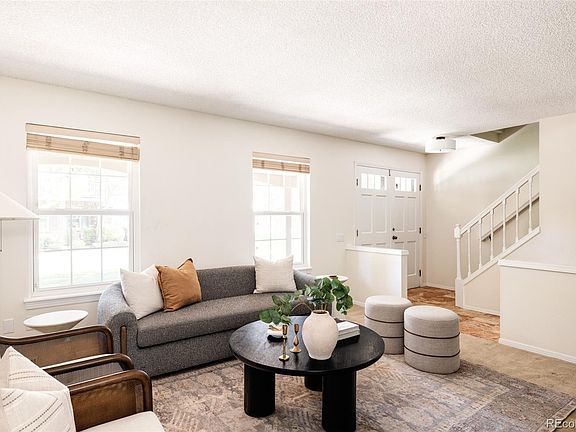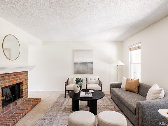 Welcome home to this charming 3 bedroom townhome in the coveted Cherry Creek Meadows neighborhood located just steps from the scenic High Line Canal and Cherry Creek Trail. Step inside the warm and inviting living room centered around a wood-burning fireplace, framed with eye-catching brickwork and topped with a wood mantle. A built-in shelving unit adds both style and functionality, ideal for displaying books, art and décor. The kitchen offers ample white cabinetry to keep you organized and a new stainless steel refrigerator. The kitchen flows seamlessly into the dining area, which opens to a fenced paver patio—perfect for entertaining or enjoying a quiet morning outdoors. Step upstairs to find all three bedrooms, including the spacious primary suite. A thermal radiant barrier was installed in the attic in 2023 to enhance energy efficiency. The spacious unfinished basement houses the full-sized washer & dryer and tankless water heater. Low maintenance living here with the HOA maintained green space, snow removal, clubhouse, pool & tennis courts. Easy access to I-25, I-225, Denver Tech Center & Cherry Creek, this townhome offers a perfect blend of comfort & convenience in an exceptional location.