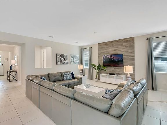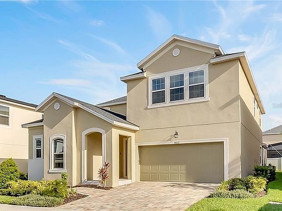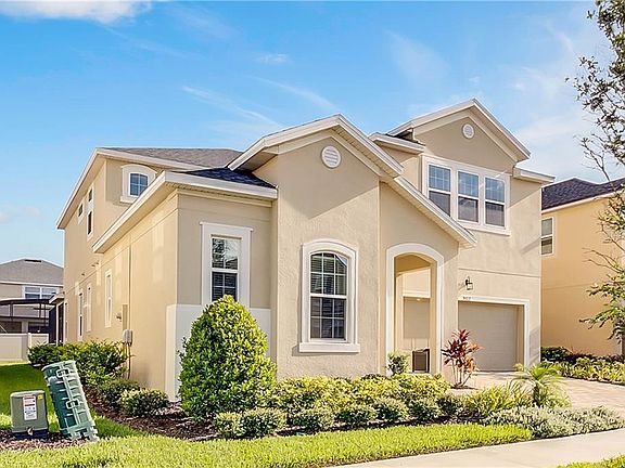 This is an opportunity you do not want to miss! Beautiful 5 bedroom, 4.5 bath home, zoned for short-term rentals, located in the gated community of Solara in Kissimmee. The open floor-plan offers plenty of gathering space with a spacious family room, dining area and a kitchen that is sure to please the home chef. The stunning kitchen provides ample storage and counter space featuring deep, wood cabinets, stainless steel appliances and a huge island with a breakfast bar. The living space overlooks a covered patio and screened-in pool area creating a backyard oasis perfect for cookouts, or simply lounging in the gorgeous Florida weather. This spectacular home boasts TWO Master Suites! One is located on the main floor and the other on the second; both include an ensuite. Additional bedrooms are generously sized and ideal for family, guests, a game room, home office or nearly anything else to fit your needs. Furnishing and decor included in the sale. Owners are only permitted to stay at the property for a maximum of 30 days at a time. Solara offers an abundance of amenities including a restaurant and coffee shop, a pool with a bar, a water slide and splash pad, fitness center, basketball and volleyball courts, soccer field and so much more! If the community doesn't offer enough excitement, popular shopping, dining, entertainment and amusement destinations are minutes away. Schedule your showing today before it's too late!