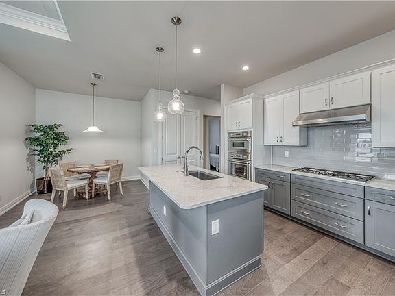 Former Model offered furnished! Exceptional opportunity awaits with this attached villa nestled in the desirable community of Azure at Hacienda Lakes. The thoughtful Baypointe floor plan offers a relaxing primary suite, spacious flex room, cozy guest bedroom, and a well equipped kitchen open to the inviting living and dining areas. Highlighted upgrades include: custom shelving in all the closets, Thermador kitchen appliances, gas cooktop, engineered hardwood flooring, custom plantation shutters, and extended screened lanai. Situated on a larger lot allows additional privacy from lanai mate so you can enjoy the tranquil water view and fountain. The resort-like amenities of Azure include: pickleball courts, tennis courts, pool, fitness center, and more. All of this is conveniently located near everyday conveniences as well as the world-class dining, shopping and beaches of Naples.
