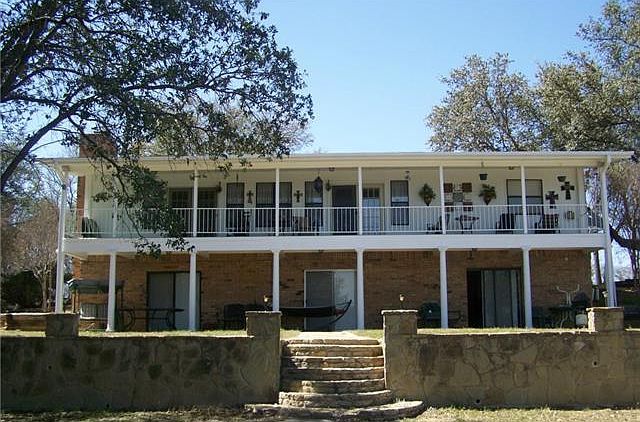 Unbelievable lake view from these two 100'' long covered porches. Top floor: formal living & dining, den, 3BR, 2BA, updated kitchen, FP, large walk-in closets, covered front porch & 2 car garage. Bottom floor: Kitchen, living, dining, 2BR, 1BA, jacuzzi & shower. Both upper & lower can be accessed at ground level. Huge yards goes from street to street. Garage, 2 car carport across street from house. Must see to appreciate!