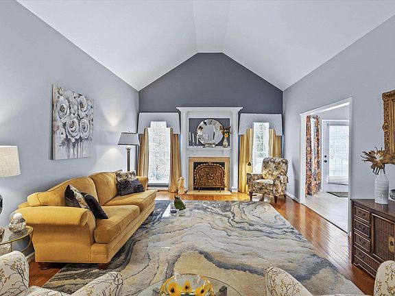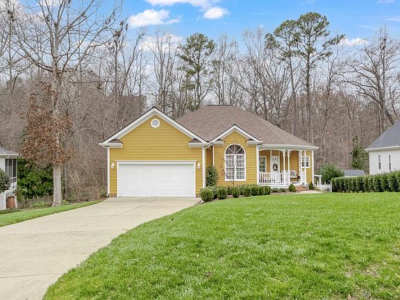 Charming one story home nestled on beautiful cul-de-sac home site with tree lined backyard. Updated and well maintained one owner home. Stunning kitchen with gorgeous granite counters, crisp white & gray cabinetry, stainless appliances & casual dining area. Spacious family room with vaulted ceiling, fireplace and long windows overlooking the private backyard. Entertain in the formal dining room also offering a vaulted ceiling. Primary bedroom with tray ceiling, walk in closet and glamorous bath! You'll love the backyard with playhouse/gardening shed. Fenced in yard. Very convenient location to shopping, dining, Kraft YMCA, future 540 & more! Dining room can be converted to 3rd bedroom if needed as original plan was designed.