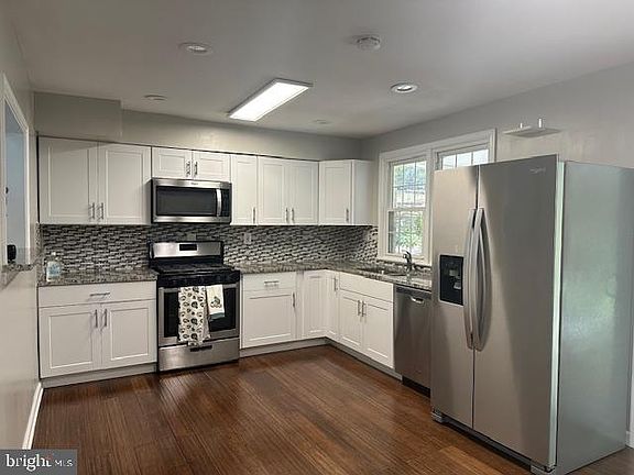 Beautiful 4 bedrooms, 2 full bath, split level with upgrades! warm hardwood floors, fresh paint, The main level features a living room, dining room, and kitchen. The kitchen has white cabinetry, counter granite, stainless steel appliances, recessed lighting. Bright living room with raised hearth fireplace. Upstairs are the three bedrooms, one full bath. The lower level features a recreation family room a bedroom, full bath, laundry, storage. garage, parking, and fenced backyard.