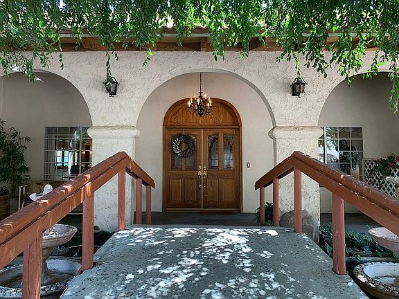 Hidden oasis! Mediterranean/Spanish architecture with arches & Spanish roof tiles. A park like courtyard entry has a circular driveway with 3 gates (2 remote controlled). The wrought iron fencing has perimeter lamps that add an inviting evening glow. Four fountains & a bridge over a Koi pond welcome you to the double front doors with stained glass. The 2,852 sq ft home has SOLAR OWNED, *3 bedrooms each with a full bath & it’s own entrance. There are 2 additional 3/4 baths. “No corners cut” on 2 full-wall wood-burning brick fireplaces, 10’ ceilings, expansive cathedral ceilings in living & dining rooms & ceiling fans throughout. Spanish floor tiles throughout for easy cleaning/ maintenance. 3 bathrooms have been remodeled with marble tops & vessel-bowl sinks. The kitchen, also, has been remodeled with white-wash cabinetry, Italian porcelain “barn plank” flooring, copper (faux) recessed ceiling with dual fans, 2 composite granite sinks, a copper bar sink & a center island with 4 stage reverse osmosis water filtration. The laundry is conveniently situated near the kitchen. 3-car finished garage has epoxy floors. All this on a .86 acres with lots of room for parking, extra storage & to add a pool. RV parking in the back near dump station. Additional 500 sq ft storage area & more attic storage above the 3 car garage. Plus a game room, show room for your sports car/MC, 20’X 20’ shop building, 50 sq ft garden tool/supply shed. 100’ dog run along side of house. Mature fruit trees: peach(2), cherry (2021 harvest generated 68#), dwarf Meyers lemon, lime, orange & mandarin orange. 3 olive trees, Red Thompson seedless grapes & a garden area. Mature cactus garden. (*2 more rooms can be used for additional bedrooms, den, or another recreation room/wet bar and a mini office.) Master bedroom is currently remodeled into a granny flat/MIL studio/ADU with separate entry & kitchenette. It has a huge walk-in closet, dual sinks & 2 skylights. It is currently rented. Let income help make your payment! Location is private yet only 4 miles from Starbucks, Lowe’s, Albertsons to name only a few. FSBO saves you money yet transaction will be professional & legal. OPEN HOUSE. SATURDAY. 7/17. 9:30-2:00