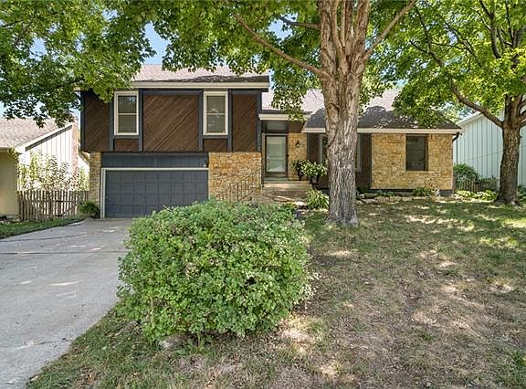 Country Hill Cutie! Just a quick easy walk to the nearby Sar-Ko-Park in the heart of the city of Lenexa. All the work's done ~ don't miss it before it's gone!! ~ 4 Bedroom side/side split with lots of upgrades throughout: NEW shiny hardwoods installed on the main level w/ views of the open vaulted ceilings in the great room. NEW dishwasher & granite countertops in the kitchen & bonus huge pantry, all kitchen appliances stay including refrigerator, sunny breakfast room overlooks the HUGE treed backyard with a newer fence around the whole yard. Enjoy evening shade on the huge deck out back! NEW interior paint throughout. Entertain your guests in the cozy hearth room w/ wood burning fireplace or host a big dinner party in the formal dining room area. 4 spacious bedrooms upstairs w/ NEW carpet including marble countertops in the master bath. BONUS upstairs loft is a perfect spot for a private home office or workout room. Laundry room off the hearth room. HUGE unfinished basement for future projects & storage space. Perfect central location & located on a quiet low-traffic street.