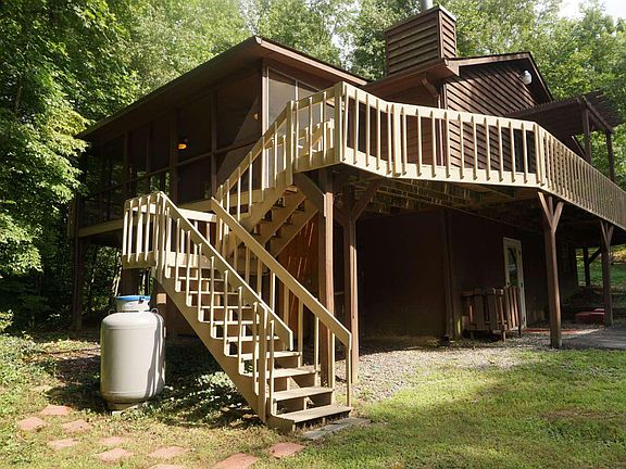 HURRY EVERYONE IS LOOKING FOR THIS CABIN! 3/2 wooded lot, paved drive extra parking. Between Blairsville & Young Harris. Fireplace, cathedral ceilings, finished lower level. A true wrap around porch and back porch is screened. Open concept, extra storage and den/office with separate entrance on lower level with half bath. Tankless hot water heater, extra storage area, Lower level handicap adapted doorways and bath. Move in ready! Sit on your screened back porch and watch the sunset, Fire pit area.
