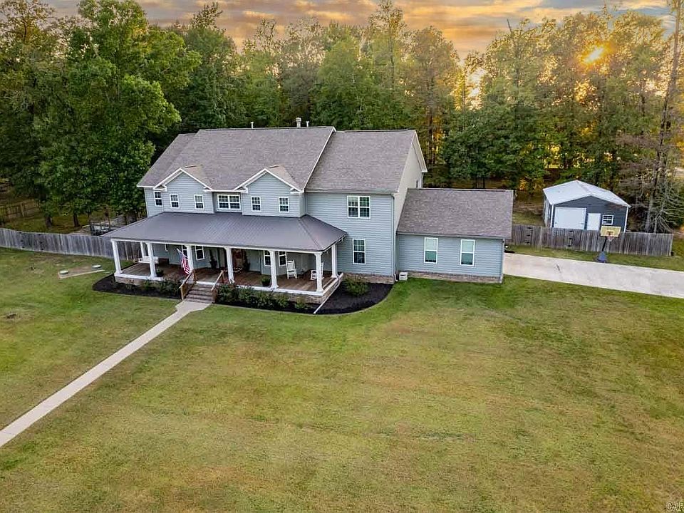 MOTIVATED SELLERS $5,000 seller concessions of buyers choice with accepted offer.Welcome to your dream home complete w/ a brand-new shop! Set on a sprawling corner acre in a quiet cul-de-sac, this estate blends style and comfort effortlessly. Walk into the grand, two-story entry where an open catwalk overlooks a spacious, light-filled living area. The heart of the home is a stunning open-concept kitchen, living, and dining space with vaulted ceilings and a double-sided fireplace. Cooking is a joy in this chef’s kitchen, featuring a gas stovetop, a Frigidaire Pro built-in fridge/freezer, a wine fridge, and plenty of room for gatherings.Working from home? An airy office makes productivity easy. On the main level, find the primary suite and a second ensuite bedroom, perfect for guests. Upstairs there are 4 beds, 2 baths and a flex space! A commercial water heater ensures endless hot water for the whole family.Outside to discover a new 20x30 shop on a concrete slab, ideal for hobbies or storage, plus an extended concrete pad and cozy gazebo for relaxing. Located minutes from I-30, Mountain View Elementary, and local amenities, this home has it all. Call your favorite REALTOR today!