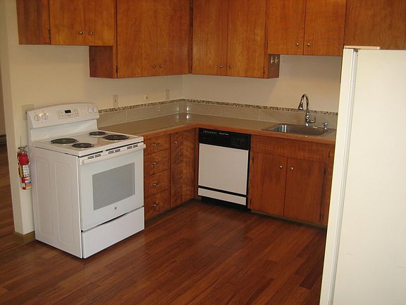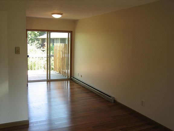 Buffed, quiet, cool, comfortable 2 bedroom, 1 bath corner unit in 4-plex. One level, range, refrigerator, dishwasher, wood floors in the living and kitchen area, new carpet in bedrooms. Two off street parking spaces, coin-op laundry on-site. Small private deck off the back. Near I-205. All electric. Owner pays water, sewer and garbage, tenant. No pet and no smoking building. Screening criteria in office. Owner pays water/sewer and garbage. All electric - tenant pays.