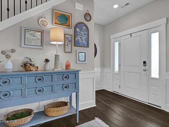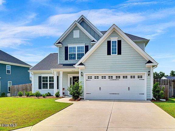 Welcome to your dream home in the water access community of Scotts Hill Village. This 2023-built residence offers over 2,600 sq ft of thoughtfully designed space, featuring 4 bedrooms and 3.5 bathrooms. Step into a sunlit interior where luxurious floors lead you through an open-concept layout. The gourmet kitchen, equipped with a gas cooktop, farmhouse sink, and spacious island, seamlessly connects to the family room and sunroom perfect for gatherings. Retreat to the first-floor primary suite with its tray ceiling, walk-in tile shower, and generous closet. Upstairs, discover a versatile loft and three additional bedrooms. Outside, enjoy a large fenced backyard overlooking serene open space and a retention pond, complete with a new 10'x12' shed for extra storage. Community perks include a community pool with fire pit, recreational room for parties, sidewalks throughout the neighborhood, and a future kayak launch, that will be located on Peplow. With easy access to area beaches, and attractions like Poplar Grove Plantation just minutes from your doorstep, you can enjoy the Farmers Market every Wednesday during the summer. Experience the perfect blend of comfort, style, and coastal living.