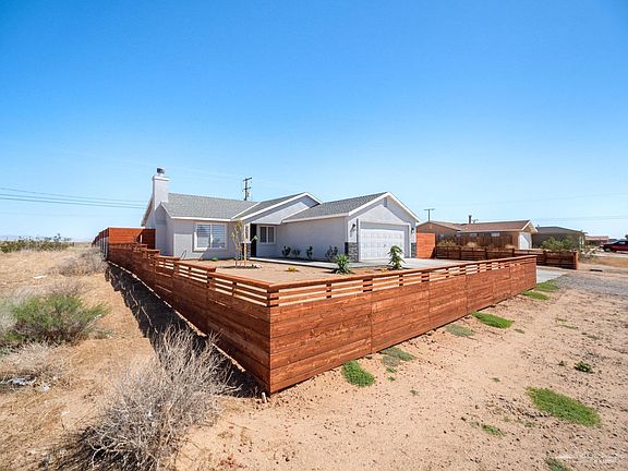 Come and make this chic abode in the heart of California City your home. You're invited to the front courtyard by stained horizontal panel fencing with drought tolerant landscaping. The bold black front door, black exterior light fixtures, the dark stone and the black address numbers brings a measure of sophistication to this home. Majority of the flooring inside the home is tiled and both bathrooms features small upgrades to bring a sense of style and warmth. Step out into the rear yard with surrounding mountain views and an entirely fenced-in backyard yard. Very nice size lot with plenty of potential in the backyard. The exterior of the home was painted approximately two years ago and it's been converted from propane to natural gas. Also, the home has vacant lots on both sides of the house, which temporally adds a measure of privacy--there's always the possibility of purchasing them to expand your property or make that added privacy permanent. If you're a golfer, then you'd be happy to know the Tierra Del Sol Golf Club is less than a 5 minute drive away. The potential is almost endless with this property!