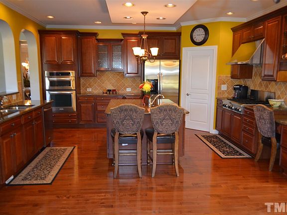 Executive home on culdesac in popular Wake Forest neighborhood close to Ral,shopping,major roads in pool com.Stone front ,rocking chair front porch greet you. 2story foyer with curved stairs,iron spindles,cat walk,.All formals,butlers pantry,large family w/custom builtins and wall of windows open to gourmet kitchen,granite,stainless,island veg sink,5 burner gas cooktop. lst fl guest ste full bath,4 lge br up all bath access & w-in closets, master tray ceil, glamour bath,his/hers van,shower,whirlpool