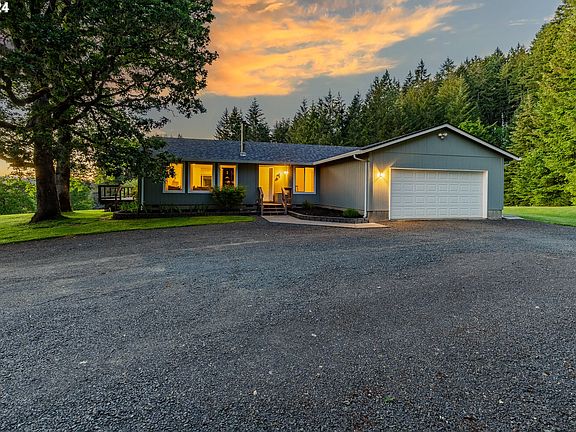Peaceful country living on over 3.5 acres! Newer 4 bed/2 bath ranch home perched atop a hill in a picturesque location. This lovely home provides a brand-new roof, installed May 2024. Its living room features the warmth of a cozy, certified woodstove. The kitchen offers ample prep and storage space, an eating bar, and stainless-steel dishwasher. The floor plan provides the comfort and privacy of a primary bedroom suite. Unwind after a long day and enjoy gorgeous sunset views while relaxing on the back deck. Stroll the grounds on trails winding through the property. Large fenced garden, variety of fruit trees. Two-car attached garage, plus detached two bay shop & RV parking. Indoor laundry room. The 6,000 gallon rain water collection system is plumbed into the garden. The dual fuel generator and holding tanks allow for water and power during power outages. A rare opportunity!