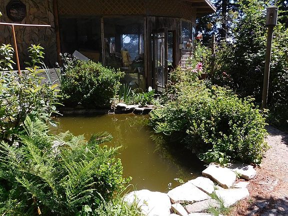 WOW oh WOW. Ever thought of owning a peninsula? Nine tax lots surrounded by water-the ultimate water front. Totally private yet just a few miles from town. Very unique home with beautiful rock work and a view to die for. Tucked neatly in the woods with beautiful gardens and koi ponds. Totally off the grid with solar, wind and backup generator power. Unfortunately remodel has not been completed and their is no kitchen.