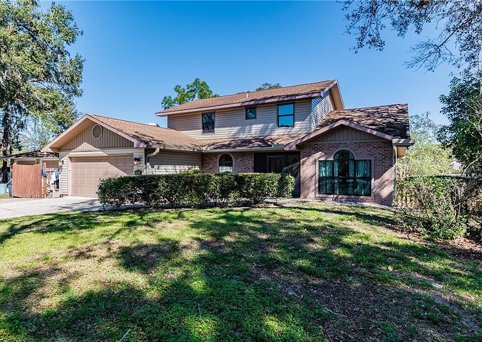 Tucked away in Braden Woods is an opportunity you are sure to love. Over 2,500 sqft, 4 bedrooms, 2.5 baths, Huge 2 car garage and a pool. Located on a private cul de sac and on a lake view, this home has so much to offer both inside and out. Two story with a huge first floor master bedroom, separate vanities, soaker tub and shower. All 3 guest bedrooms are located upstairs and share a common bathroom. Formal living and dining room. Kitchen and living room combo with a brick fireplace to gather around. Both rooms have french doors that open to the outside. The porch boasts a large area underroof as well as some space around the pool for grilling or lounging. Backyard has a lovely setting that over looks the water and is lined with towering trees. You will be pleased to find this home has all NEW windows, NEW Siding, and newer AC. Lots of potential for the kitchen and master bath as the spaces are very large. Braden Woods is a fabulous neighborhood that has that country space feel but is conveniently located to everywhere you want to be. Mature oaks, wooded feel, large lots, and no cookie cutter homes here. Come discover the draw to Braden Woods and shine up this almost sparkling hidden gem.