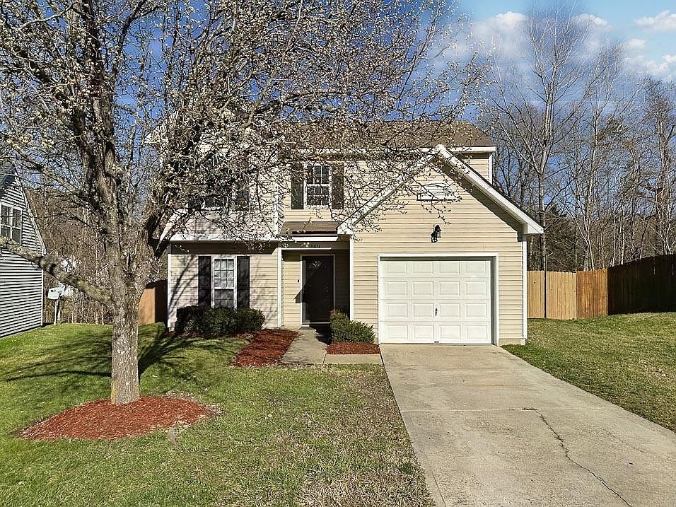 Beautiful, well maintained home near the cul-de-sac you don’t want to miss. Kitchen features stainless steel and black appliances with spacious formal dining room. 3 generous sized bedrooms and 2 full baths on the upper level. Primary suite features vaulted ceiling, garden tub and walk-in closet. Laundry closet is located on the upper level with a washer and dryer that conveys. Home was recently fully painted, new carpet in the upper level, laminate flooring downstairs, new faucets in kitchen and bathrooms, hot water heater is 2 years old, new garage door motor. Extended patio at the back door and fence was recently reinforced and painted. Property line extends beyond the fence. This home will not disappoint! Home is close to I485 and I85 and located a few miles away from the airport, Whitewater Center, River Bend Village, Uptown and so much more!!!