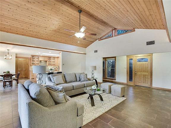 Serene, spacious rare find in Granada Estates in SW Austin. Nestled in majestic oaks, this sprawling, open "in law" plan offers 4 beds, 3 baths & suite w/sep entrance as 5th bed or bonus rm. Towering pine vaulted ceilings, warm tile, open kitchen w/ss appliances, granite, lots of natural light & storage GALORE! All fresh paint 2018! Private backyard backs to greenblt w/tennis court, irrigated gardens, & inviting covered patio. Mins to DT, Lakeway & S. Austin's best amenities!
