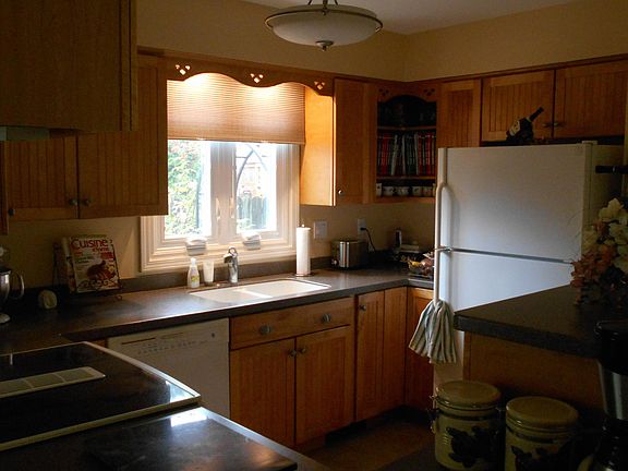 Beautiful updated two story home tucked away on a peaceful and quiet dead end street close to schools, resteraunts and shopping. The whole house has been fresh ly painted with new light fixtures and oily bronze hardware. Great room, hall and ''flex'' room beautiful pergo floors. Great room has a wood burning fireplace, vaulted ceiling and french doors leading to the deck. Kitchen is very charming with lots of cabinets and large eating area and also leads to the deck for easy entertaining. The flex room is currently being used as an office but could also be used as a dining room. It has beautiful crown molding. The second floor has 3 bedrooms with large closets and 2 baths. The master bedroom has a vaulted ceiling with a paladium window and master bath with soaker tub. All 3 bedrooms have ceiling fans. The basement is large, freshly painted and could be easily finished. The two car side load garage has a new insulated automatic garage door and extra large driveway. Outside of the home is well maintained and has mature trees and landscaping. Privacy fence in back yard and a beautiful deck.