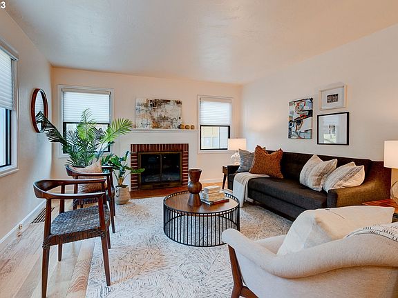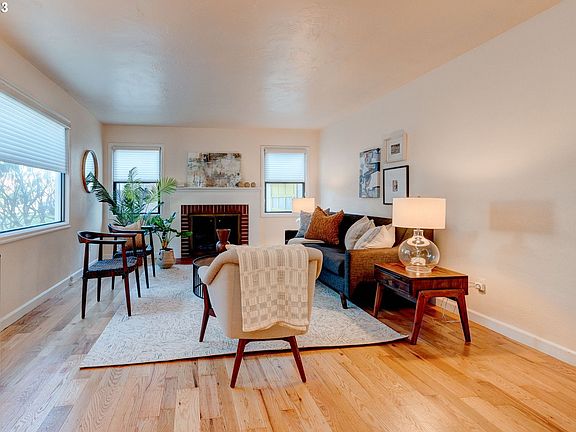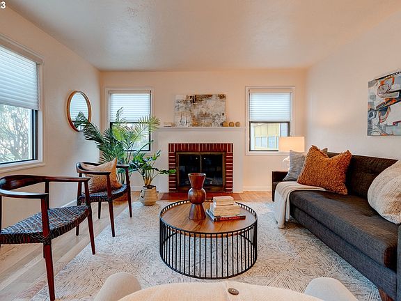 Tucked away on a winding street at the base of Rocky Butte, find this 1947 Capecod with a cabin-like vibe! Hardwood floors and a fireplace, vintage kitchen with wood cabinets and cork floors..cute eat-in table! Dining room overlooks park-like backyard. Think summer parties! Large covered patio makes for easy outdoor living. Fenced grass yard..bring the pup! Room for your garden dreams. Lower level with tall ceilings has a vintage knotty pine non-conforming 3rd bedroom, laundry room, and room for a family room! Double car garage with workbench and storage...large flat driveway. Perfect for a camper van...or EV! Neighborhood favorites...Hancock park, Rose City Park, Gateway Green Bike Park, Dharma Rain Zen Center, The People's Court indoor pickleball, Pho Oregon. Quick trip to the airport. Easy access to highways and lightrail and bus stop. [Home Energy Score = 4. HES Report at https://rpt.greenbuildingregistry.com/hes/OR10029206]