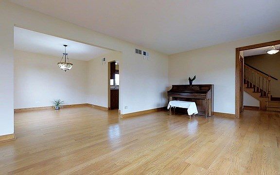 4 Bedrooms, 2 1/2 Baths. Hardwood Floors throughout First Level. Roomy eat-in kitchen with corian counters. Open Floor Plan w/large family room. Large Master Bedroom has sitting area Master bath with lots closet space and dress mirrors. Many updated in the pass few years which included painting,2nd Floor carpeting, ceramic tile at bathrooms, bathrooms vanities, patio, kitchen appliances , windows, roof, A/C, siding & Furnace. etc. Full unfinished basement with a hot tub ( sold as is ) . Nice size back yard. Few minutes to Carl Sandburg School, Train station for commuters . A Great home at a great price.