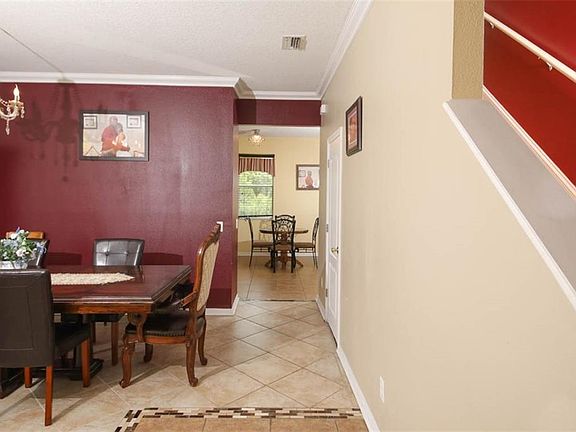 - Interior Features: Ceiling Fans(s), High Ceiling(s), Living Room/Dining Room Combo, Crown Molding, Solid Surface Counters, Eating Space In Kitchen, Kitchen/Family Room Combo, Thermostat