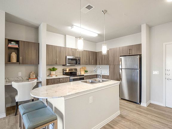 - Exterior features: Active Social Calendar, Arts & Crafts Studio, Balcony, Chef Inspired Kitchens, Community Elevators, Demonstration Kitchen, Garden, On-Site Maintenance, On-Site Management, Pet Park, Renters Insurance Program, Salon, Stainless Steel Appliances, Two Toned Granite Countertops, Walk-In Showers*, Wood-style Flooring