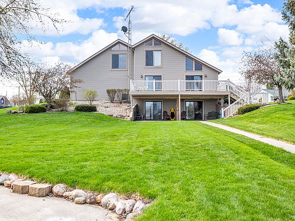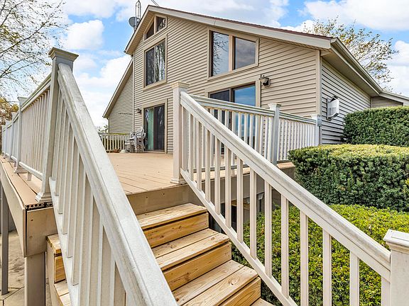 Loch Erin Lakefront - Just In Time For Memorial Day!! This one has all the waterfront ''Must Haves'' flat walk to the waters edge, walkout lower level with plenty of entertainment space, easy clean hard surface flooring, bathroom, covered patio, dual docks, firepit, sandy beach & just outside the slow no wake zone. Main floor living is open concept with adorable breakfast nook, fireplace, primary suite, newly remodeled kitchen with stainless steel appliances & fantastic deck overlooking the lake! Upper level offers an additional ensuite with ENORMUS room currently used as storage that could be a finished rec room, office etc.. Did I mention this level has it's own entry from the attached garage so it could be used as total separate living space!