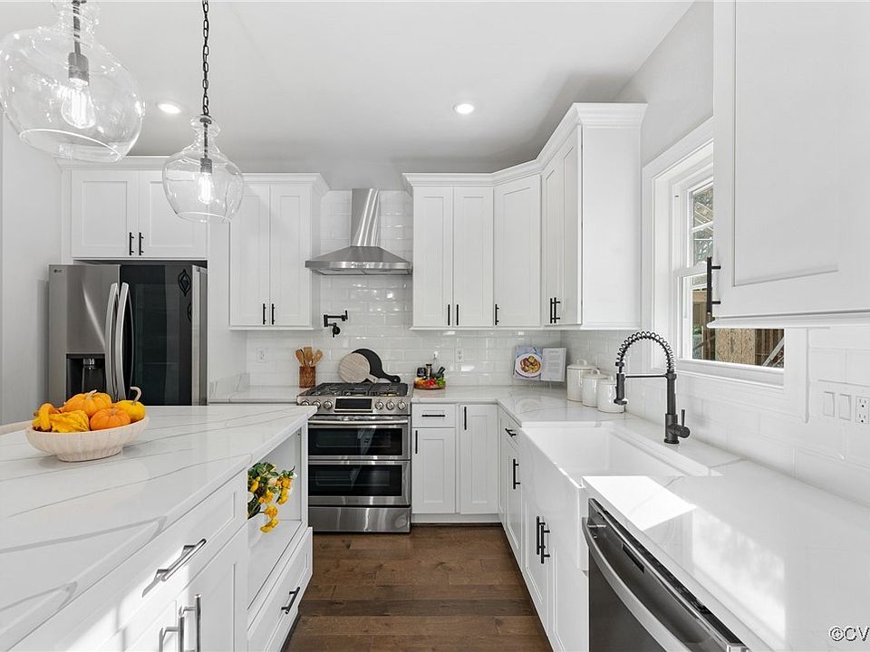 A pristine Luxury build by, Luxury Home Experts, Xtreme Homes LLC. Located in the River Road corridor & within walking distance to Collegiate. Nestled in one of the last historic neighborhoods in the west end, & convenient to shopping, I64/I95, I195, I150, eateries & grocers. Approach this pristine beauty, & be enamoured by the brick facade & geometric roof line. Pull onto the gorgeous stamped concrete driveway with a 2.5 car attached garage with stamped concrete, a tankless water heater, & pre-wired for a car charge station. A manicured lawn with sod & a front & side irrigation system. Walk up the hand-crafted brick stairs through the front door & begin your luxury experience. The breathtaking 2-story foyer boasts a balcony overlooking the entrance. A formal dining room with decorative wainscoting. Hardwood floors & recessed lighting accents throughout add to the appeal. The formal living room with a gas fireplace enveloped with slate, is perfect for the holidays. The finest chef will love preparing meals in the phenomenal gourmet kitchen with 42" soft-close cabinetry with decorative crown molding, a porcelain farmhouse sink, quartz countertops, center island, tiled backsplash, gas cooking, & a pot-filler. Knock on the refrigerator door & see what happens. The kitchen extends into the serving area with a wine cooler, wine rack, a pantry with motion senor lights, more cabinetry & wine glass storage. Venture upstairs to your primary bedroom with a tray ceiling & not one, but two walk-in closets. Enjoy the most immaculate tiled en suite bathroom with a marble top double vanity. Relax after a long day in your soaking tub, or maybe you want to enjoy a long shower in your glass-enclosed & tiled rainhead shower. 3 Additional sizeable bedrooms. This home comes complete with laundry with washer & dryer hookup. Your are sure to enjoy the fenced backyard with a deck. Come experience this beauty!