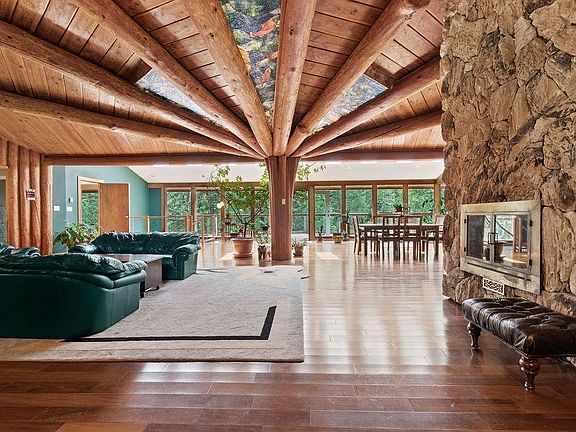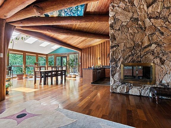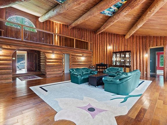 Nature lover's dream, offering a peaceful and secluded living experience in the beautiful Paradise Valley. With just over 2 acres of land and two homes situated beside the river, this property is truly unique. The main circular log home is a breathtaking sight, with a red cedar centerpiece and sprawling logs that create an open and inviting space. The massive stone wood-burning fireplace adds to the cozy atmosphere, and it can even be used for cooking. Addition done in 2006 provides ample space for entertainment and relaxation, with multiple skylights that allow for natural light and breathtaking views of the river. The main house has 3 bedrooms and 3 baths. The second home, with 2 beds and 1 bath, is perfect for generating rental income. This property offers endless opportunities!