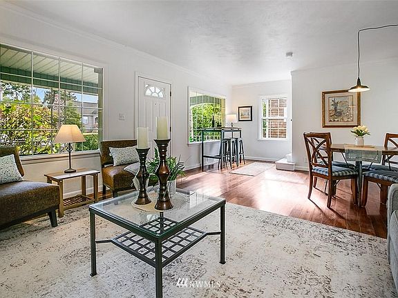 Charming Greenwood Craftsman featuring rocking chair front porch. Sunny day rooms & lovely in-home office overlooking private backyard with stately Elm. Spacious bedrooms on every floor & jacuzzi tub in downstairs bath. Basement has separate entrance! Fresh interior paint, gas heat, vinyl windows & majority of decking replaced with new railing. Ample off-street parking for cars, boat or RV & just a short drive to future light rail. 92 Walk Scoreclose to Greenwood restaurants, pubs & parks!
