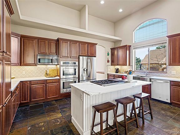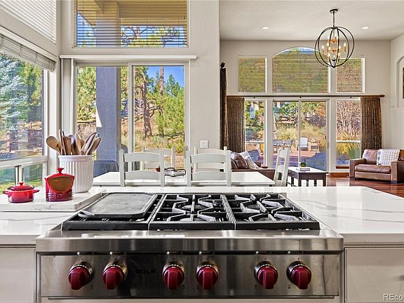 Look no further if you want the quintessential Parker Colorado home. This home has everything you are looking for if you love the feel of living in the mountains but need to be close to the city. The home is decorated in mountain contemporary with stone, wood, slate, and tile accents throughout. Windows go from floor to ceiling, and high vaulted ceilings make you feel at one with nature. The lines between indoor and outdoor spaces are blurred. The half-acre lot with towering pines and mature landscaping will instantly become your happy place. The private yard is great for relaxing on a Colorado evening. The dramatic landscaping lighting adds to the charm of this fully custom home. At 6600 square feet, there is all the room you need. The home is set up for entertaining a crowd or intimate formal dinner parties. If a man cave is what you need, the basement has you covered. It includes a projector with a nine-foot screen, a pool table (Negotiable), a wet bar, and room for epic, big game parties. The main floor primary bedroom is oversized and opens to the backyard and patio. It is light and bright with a wall of windows but still feels private from the well-designed landscaping. It will hardly feel like work in the home office with a classic feel with wood floors, wood wall paneling, access to the back patio, and a fireplace. The upstairs has three huge bedrooms, all with ensuite bathrooms and a loft. Two additional basement bedrooms could be used for additional offices, a workout room, guest suits, or a craft room. Storage is no problem with 529 unfinished square feet of storage in the basement. All the details were thought through in this home, from a roof ice clearing system to a southern exposure. This home is move-in ready for you to make it your own. Thanks for looking.