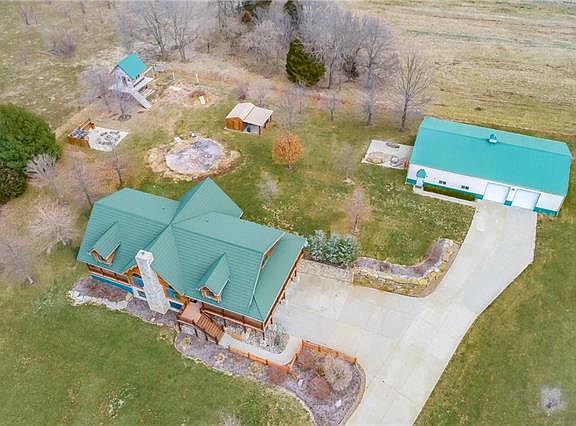 A one-of-a-kind home that will exceed all your expectations. This luxurious custom-built log home rests in the rolling hills of Ray County. A short commute will have you relaxing by the wood-burning fireplace and taking in the natural wildlife that this 6-acres has to offer. The home includes a gourmet kitchen with granite counter tops, stainless steel appliances, 8' thick concrete storm shelter and a 70x42 outbuilding.
