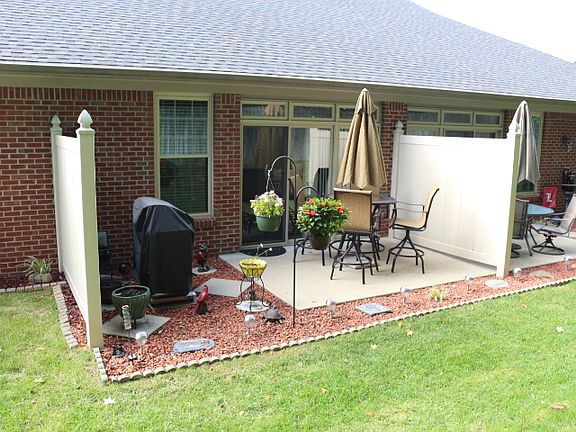 Located in a small, 20 building (40 single family) Patio home community; all brick, spacious, open one-floor plan, 2 BR, 2 LG Baths, 2 car garage, 12' ceiling in great room; gas fireplace; bay window in eat-in kitchen w/ granite counters, travertine tile backsplash; Master BR with walk-in closet; Bath has 2-48" vanities, walk-in shower, tile enclosed tub; 2nd BR w/pocket door to lg. bath for private suite. Ceiling fans in all rooms; ceramic tile in foyer, kitchen, baths, laundry & sunroom; large private patio. Close to grocery/drug stores. Neighborhood Assoc. has several meet & greet functions during year. Very quiet, friendly neighborhood. Will work with buyers agents.