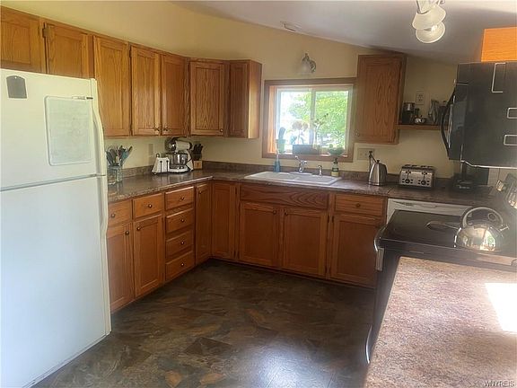 Fantastic location! Minutes to Pembroke school, thruway, and Corfu village. This well maintained home sits on just near an acre. 2 first floor bedrooms, first floor laundry. Furnace '09, h/w '09, freshly painted interior, updated flooring, spacious kitchen, vinyl siding, windows within 10 years, roof 10 yrs main-4yrs back, public water, public sewer, back patio 4 years. Detached 2 car heated garage. This is a must see. Delayed negotiations until Monday 6/15/2020 at 7pm.