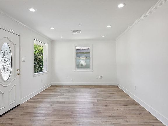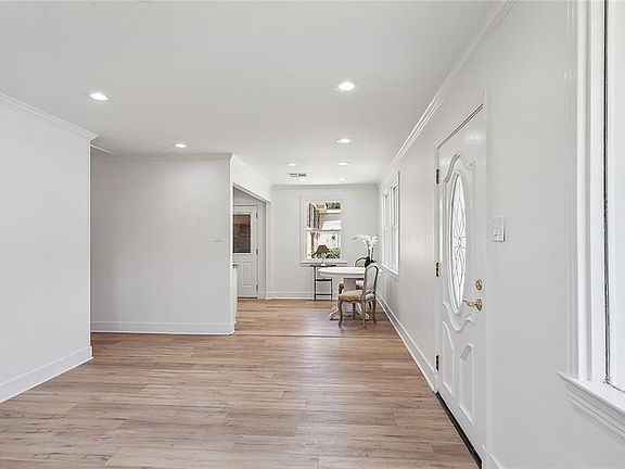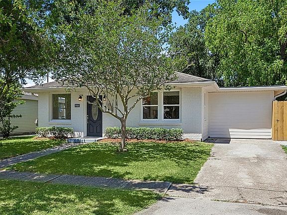 Absolutely adorable River Ridge home has great curb appeal! This is a stunning renovation offering comfort and style- a 3BD/2BA with an over-sized laundry room that houses pantry cabinet. Entire home has been freshly painted inside and out + backyard shed. The bright kitchen has stainless steel appliances, with a gas range/oven, ample cabinets and granite counters. Exterior consists of painted brick, hardy board, and vinyl siding. Primary bathroom has a new soaking tub, subway tile, & new flooring. New luxury vinyl plank flooring; laundry room has painted wood plank flooring. The laundry room has two built in cabinets which could be used for a pantry or utility items and enough room left for a home office or exercise area. New crushed aggregate in side alleyway and rear patio adds a nice esthetic. Huge barn type shed in backyard. Driveway parking for two vehicles. Sewer line replaced. “X” Flood zone. Blocks to Jefferson Highway, grocery stores, and about 5 miles to the Ochsner main campus. Welcome to this light, bright and comfortable home!
