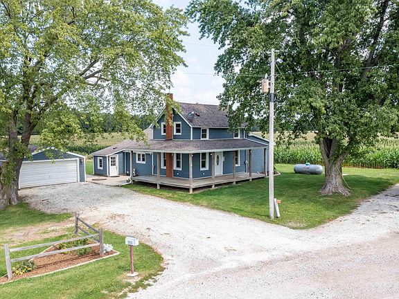 Escape to your own private retreat! Imagine coming home to this charming 3-bedroom home, nestled on 2.5 picturesque acres, complete with a 1-acre pond that's stocked for your fishing pleasure. Whether you're reeling in rain perch, largemouth bass, crappie, bluegill, or red ear, you'll never have to leave your property to enjoy your favorite pastime. The pond is 17 ft deep when full and approx 14 ft deep now. Start your mornings with a cup of coffee on the expansive wrap-around porch, enjoying the views of your picturesque setting and private pond. The interior offers a generous 1,600 square feet of main-level living space, an additional 400 square feet upstairs, and a partial, unfinished basement. The spacious 25 x 13 Master suite on the main level is a true retreat, featuring a large walk-in closet, a full bathroom, and direct access to a side deck—your perfect spot for unwinding in the evenings. For those who need extra space for hobbies, storage, or a workshop, the property also includes a versatile 56 x 24 outbuilding and a detached 2-car garage. With updated furnace and central air (2015), water heater (2016), roof, windows and vinyl siding (2017), and water softener (2018), you can move in with peace of mind. This is much more than just a home… it's a lifestyle. Don't miss the chance to make this serene retreat your own!