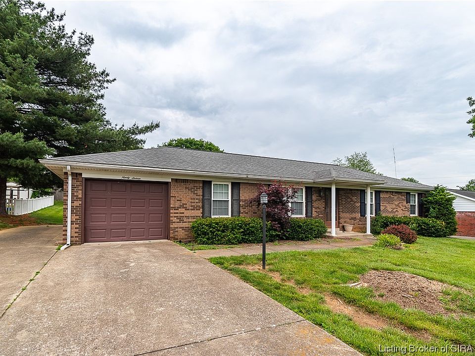 Fantastic Location, Convenient to shopping, schools, restaurants and more. This 3 bed 2 bath all brick ranch boost over 1500 sq ft and is ready to move in to at closing. Living room, Family room/Siting room, Dining area, Large Kitchen with many cabinets, 1 car garage with additional paved parking space and beautiful back yard. Kitchen appliances include Refrigerator, Stove, Dishwasher, as well as Washer & Dryer. Built in corner cabinet in dining area, Sellers are trustees and have never lived in the property and have no knowledge of the age of anything. (3) Sellers need at least 24 hours to answer any offers, Sellers guarantee nothing but welcome inspections. Over 65 exemption will fall off unless you can qualify. Sellersburg Schools, buyers should verify. Sq ft & rm sz approx.