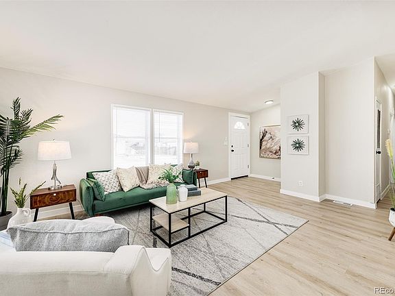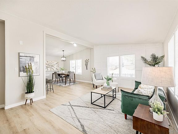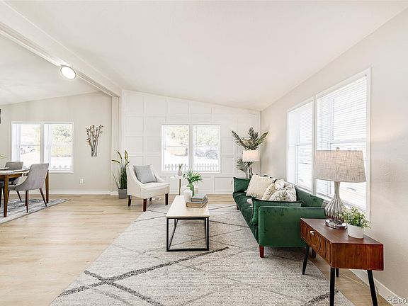 Discover this absolute gem situated in a prime location, directly across the street from CAMENISCH PARK. This park offers an array of recreational amenities, including tennis courts, a basketball field, trails, a disc golf course, and ample open space for outdoor enjoyment. As you step inside, you'll be greeted by a wide-open floor plan featuring VAULTED CEILINGS, creating a spacious and inviting atmosphere. Natural light floods the interior, enhancing the fresh vinyl flooring and paint that add a modern touch to the home. The spacious living area seamlessly connects to the dining space, adorned with a custom accent wall. The kitchen is a focal point, boasting new cabinets, quartz countertops, SS appliances, and a peninsula island that serves as both a functional workspace and a casual dining area. The PRIMARY SUITE is a retreat, featuring an ensuite full bath with custom tile designs, adding a touch of luxury to your daily routine. Two additional well-appointed bedrooms and a full bath complete this one-of-a-kind home. Step outside to the private backyard oasis, complete with a flagstone patio, pergola, and firepit, creating the perfect setting for outdoor entertaining or relaxation. Concrete parking spots and a large laundry room add practicality to the home. Conveniently located with easy access to both 36th and I-25, this home provides a quick commute to Denver or Boulder, making it ideal for those who value both city and outdoor living. Don't miss the opportunity to make this uniquely charming home YOUR OWN!