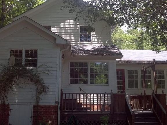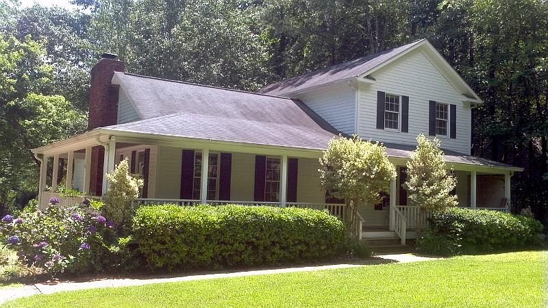 Please do not enter property without appointment 2-year lease. Landlord lives next door and maintains the yard. Open plan farmhouse on 1 acre lot with vintage kitchen and trim. Beautiful wrap-around porch in front, plus enclosed, conditioned porch in rear. Large bedrooms and lots of closet space. Master is on 1st floor. Huge 30 x 24 single-car garage. Landlord to paint kitchen, living room and master bath. Outside improvements (repairs, paint and deck replacement) will be underway in the first months of your tenancy. Great schools! Walk to the Y! Yard is not fenced and Holly Springs Road is generally busy with traffic. Please do not enter property without appointment This is a 2-year lease All adults must be on lease Landlord will run background and credit checks Non-refundable pet deposit required Indoor cats only Washer and Dryer Hookup provided No smoking City water and sewer Heat pump