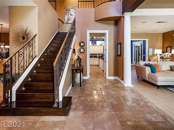 EXQUISITE BEAUTY!! Mediterranean style villa boasting incredible charm and true elegance throughout. Distinctively located in the highly coveted Opus Drive community of CANYON GATE. Courtyard Entry* Expansive Open Floor Plan* Beveled Travertine, Marble & Hardwood Flooring* Plantation Shutters* 3 Fireplaces* Spacious kitchen with granite counter tops, stamped tin ceiling, nook and veggie sink* Large primary suite features retreat w/fireplace, coffee bar, 35 ft. private balcony and gorgeous primary bath includes limestone counters, fireplace and jetted tub* Magnificent outdoor living space with lush, soaring landscaping creating the ultimate privacy and featuring a sparkling spool, covered patio and quaint entertaining area with fireplace. Guard Gated & Country Club Living at it's best!! Come enjoy golf, tennis, fitness center, pool/spa, club house, wine locker and playgrounds. HOA fee includes front yard maintenance. All interior furnishings are available for sale.