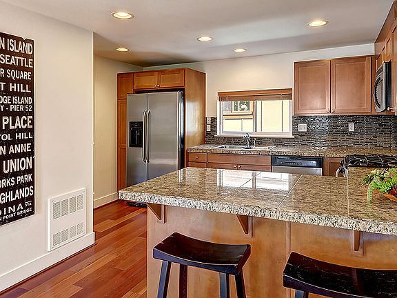 Beautiful 2 bedroom 2.5 bath + den townhome tucked away within the Green-Lake Community. All high quality features. Great Style: This home offers a warm and welcoming presence upon entry. Its living space is breathtaking and spacious! Some of the amenities include a gourmet kitchen complete with stainless steel appliances, gorgeous hardwood floors, gas fireplace & secured Southern facing patio. Great Space: This 1150 sq. ft. townhome features 2 bedroom + den & 2.5 bathrooms. Both bedrooms including the W/D are located on the top floor & feature vaulted ceilings & private full bathrooms. The first floor features a small den ideal for a home office that opens out to a fully fenced backyard & garage entry. Great Walkability: Centrally located in North Seattle for the best of city living. Walk to North Seattle Community College & minutes commute to Northwest Hospital/Medical Center & Northgate Shopping Center. Only a short drive to UW w/ quick commute via I-5 to downtown Seattle, Bellevue, Redmond, Kirkland, Everett, etc Many area shops, restaurants, grocery stores, entertainment, & other services are only few minutes away. Dogs allowed w/ additional refundable pet deposit. Sorry, no cats. Move-In Fees: Monthly Rent: $3150 Refundable Security Deposit: $3000.00 Application Fee: $60.00 all applicants 18 and over must submit an application Refundable Pet Deposit: $500 Pet Rent: $50 a month (max two dogs) Lease Term: 12+ Months Unit Amenities: One-Car Garage Fenced Backyard Cable Ready Gas Fireplace Stainless Steel Refrigerator Stainless Steel Range Stainless Steel Dishwasher Stainless Steel Microwave Garbage Disposal W/D in unit Dogs ok-maximum two dogs ~$600 refundable pet deposit, max two pets ~$50 monthly pet rent, per pet max two pets ~$60 application fee: all applicants age 18 and over must submit an application ~Rental Application Criteria: