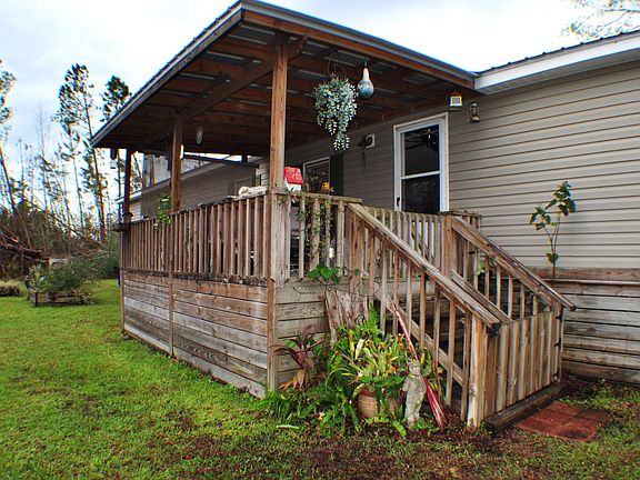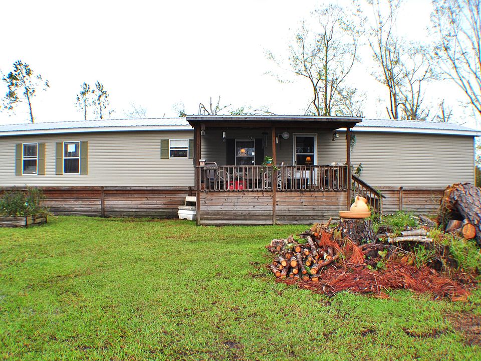 Great home in the Kingswood area with a private pond! This is a 1.4 acre parcel with a 3BR/2BA mobile home. The home is move-in ready and has a metal roof, all electric, deep water well and you're only 10 minutes from Southport/Lynn Haven. There are two covered porches off the home and a detached covered porch ideal for your RV/camper. There are also a couple of storage sheds and a large dog kennel. Some of the trees were knocked down around the property and sellers in process in deforesting the lot. Quiet area with your own private pond that you can see from the kitchen and front porch. All info is approx. and must be verified by Buyers if important. Home is being sold AS-IS.