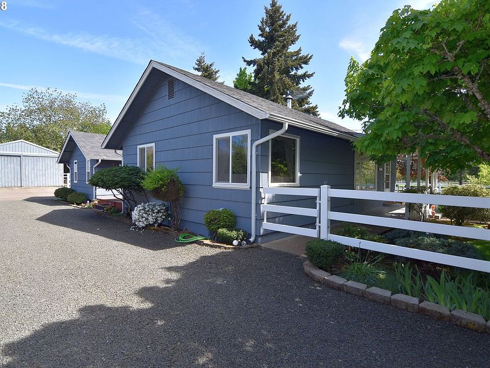 Beautiful close-in country home sits on an acre in one of Eugene's most sought after neighborhoods. Home features hardwood floors, arched doorways, vinyl windows, darling front porch, master suite with bath and walk-in closet, finished garage and large laundry. Large 37 X 19 shop, several out buildings, large fenced garden, fenced open field, fruit trees.Property surrounded by Vinyl. Whole house, well purity & flow and septic completed.