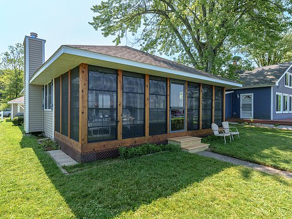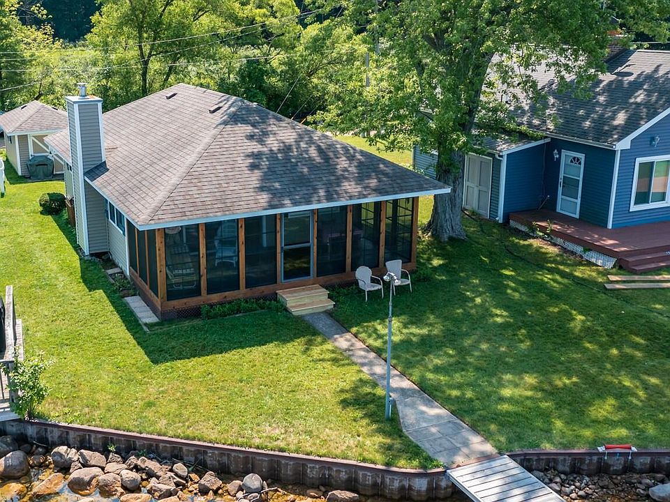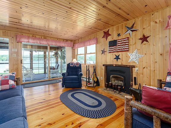 Welcome to your dream lake cottage with breathtaking sunset views on sandy all-sport Cedar Lake! Situated at the end of a quiet road, this meticulously remodeled and well-maintained home is the perfect get-away. As you step inside, you'll be greeted by a spacious open floor plan seamlessly combining the kitchen, dining, and living room with warm knotty pine interior and a charming wood fireplace. The 240sqft sun porch with floor to ceiling vinyl screens/windows offers the ideal spot to unwind in the breeze and enjoy panoramic lake views. To complete the idyllic experience, THIS COTTAGE COMES TURN-KEY with all thoughtfully selected furnishings included. Showcasing a high level of care and attention to detail, roof and siding was replaced in 2010, new Marvin windows throughout, plumbing & electrical updated, new high-efficiency heating units, and public sewer. A 10x15 storage shed with concrete floor and electric offers additional storage for a small boat and all your toys. Possession will be on or after 9/7/23