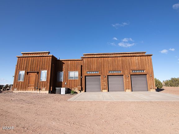 Beautiful Old West Style home with guest quarters on 20 acres. Main house consists of 2,000 sf 3 bed 2 bath with beautiful kitchen. Granite countertops, double oven. Guest house is a 3,000 sf fully insulated Metal building with full Commercial kitchen, living area, 2 bathrooms and 6 potential bedrooms or storage areas. 6 bunk beds and other furnishings all convey to make this a turnkey family living compound or a fully functional Vacation rental for family reunions or get togethers. Easy access right off Paved road just 11 miles from Stoplight in Snowflake. Main Home has both Solar and gas water heaters. Guest quarters supplied with 2 on demand water heaters and a separate septic system. 3 propane tanks, 1 owned 2 leased. Property has both solar and grid tied power for all your