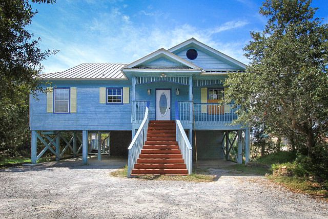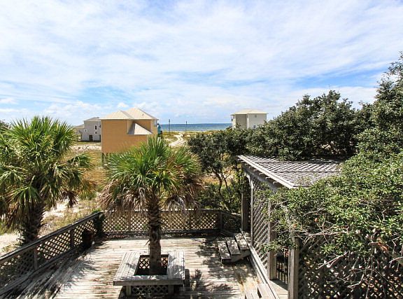 UNBELIEVABLE BEACH &! AMAZING PANORAMIC GULF VIEWS, HIGH, PRIVATE & TREED LOT! 3rd tier lot, HIGHLY DESIRED GOVERNMENT SUB, access south end Veterans Rd. SOARING, VAULTED Ceilings, split OPEN FLOOR PLAN, GRANITE. Masterbath: CUSTOM TILE WALK-IN SHOWER, JETTED TUB. Ground floor: GUEST-SUITE or IN-LAW SUITE or 4th BEDROOM & BATHROOM, Kitchen. Additional STORAGE underneath stairs & shed/WORKSHOP. Fixer up, needs TLC & new decking, etc. Subject to Alabama Right of Redemption. SOLD AS-IS WHERE-IS. Seller/Listing agent makes no warranties, expressed or implied, as to condition, elevation, appliances, utilities, etc. FC 8/11/15 Buyer responsible for verifying, researching, inspecting & and all info. BEACH & TREES.. ONCE in LIFETIME PRIVACY & GULF VIEWS